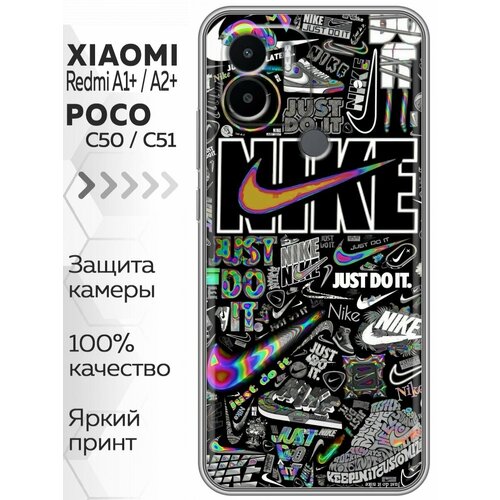 Чехол для Xiaomi Redmi A1+, Redmi A2+, Poco C51 с принтом Найк (Сяоми Редми А1+, Редми А2+, Поко С51)