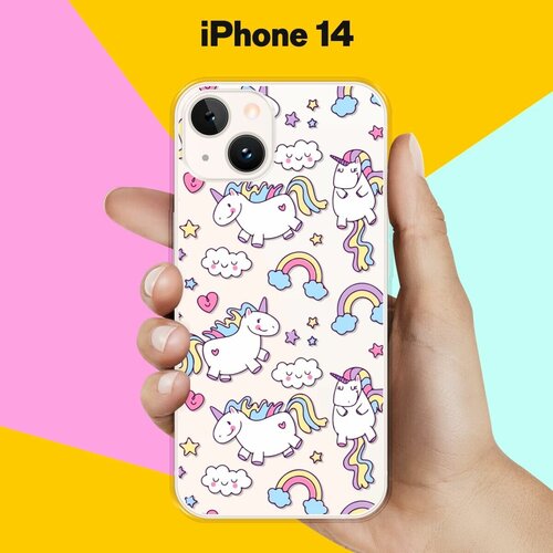 Силиконовый чехол на Apple iPhone 14 Узор из единорогов / для Эпл Айфон 14