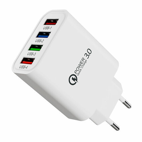 Сетевое зарядное устройство для телефона (блок питания) GSMIN HCJ-4430 с поддержкой быстрая зарядка Quick Charge 3.0 с 4 USB выходами (Белый)
