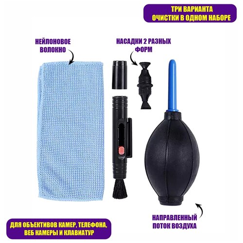 Набор для чистки объектива 3 в 1: салфетка, воздуходувка, ручка для чистки