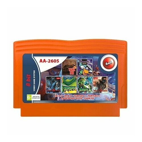 Картридж DENDY 6в1 AA-2605 М. К.3(28 р.)+М. К.4(28 р.)+TURTLES 1,4+DARKWIN DUCK+TANK 90
