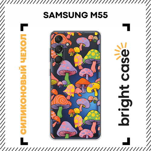 Чехол на Samsung Galaxy M55 / Самсунг M55 с принтом Цветные грибы, прозрачный