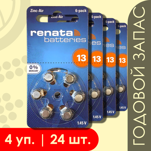 Renata 13 (ZA13/Оранжевый) | 1,45 вольт Воздушно-цинковая батарейка для слуховых аппаратов - 24шт.