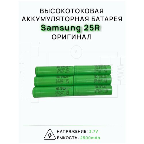 Аккумуляторная батарея высокотоковая Samsung - 6шт 25R, размерность 18650 2500 мАч 30А 3.7В