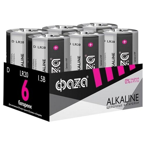 Элемент питания LR20(D) Alkaline Pack-6 (батарейка,1.5В) ФАZА