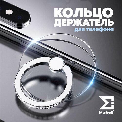 Попсокет для телефона кольцо держатель прозрачный со стразами хром