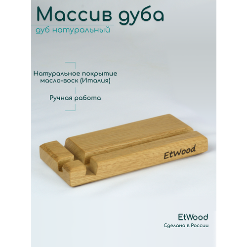 Подставка для телефона и планшета, настольная деревянная, дуб натуральный, EtWood