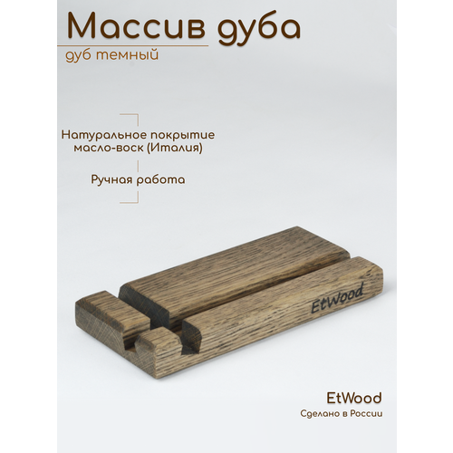 Подставка для телефона и планшета, настольная деревянная, дуб темный, EtWood