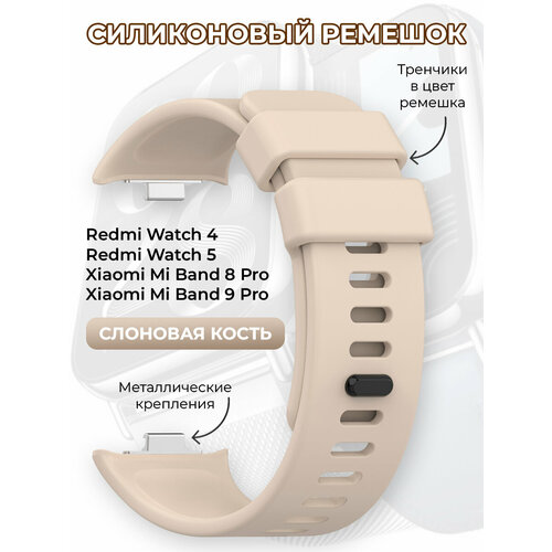 Силиконовый ремешок для Redmi Watch 4/5 и Xiaomi Mi Band 8 Pro/9 Pro, слоновая кость