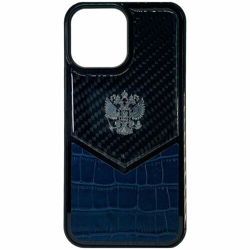 Чехол с гербом РФ кожа-карбон Delta для iPhone 14 Pro Max, iGrape (Синий)