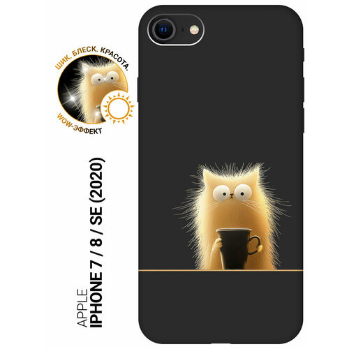 Силиконовый чехол на Apple iPhone SE (2022) / SE (2020) / 8 / 7 с принтом "Котик с кружкой" матовый черный