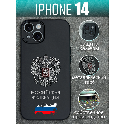 Чехол на iPhone 14 с серым металлическим Гербом для Айфон 14