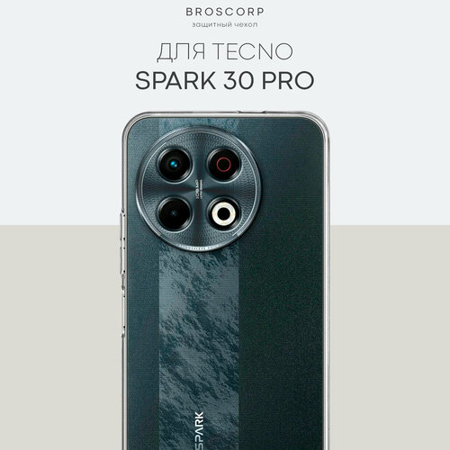 Силиконовый чехол Broscorp на Tecno Spark 30 Pro (Техно Спарк 30Про) с защитой камеры, прозрачный