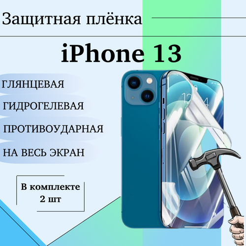 Гидрогелевая защитная пленка для iPhone 13 глянцевая на весь экран 2 шт