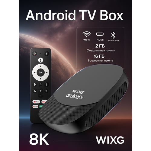 WIXG Медиаплеер Смарт ТВ приставка Android, 2 ГБ/16 ГБ, Bluetooth, Wi-Fi, матовый