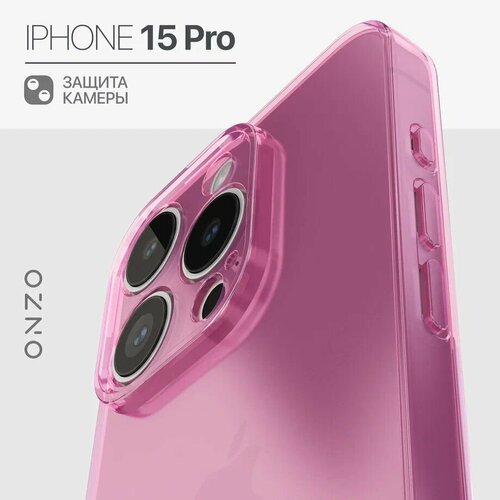 Чехол для iPhone 15 Pro / Айфон 15 Про тонкий, розовый прозрачный