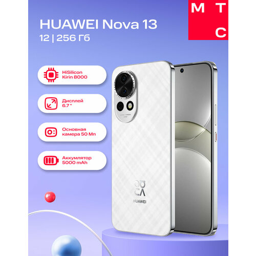 Смартфон HUAWEI Nova 13, OLED экран 6.7", камера 50 Мп, NFC, HarmonyOS,12gb+256gb