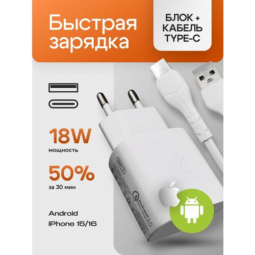 Зарядное устройство для телефонов Android и iPhone 15/16 ( Адаптер USB + кабель Type-c )