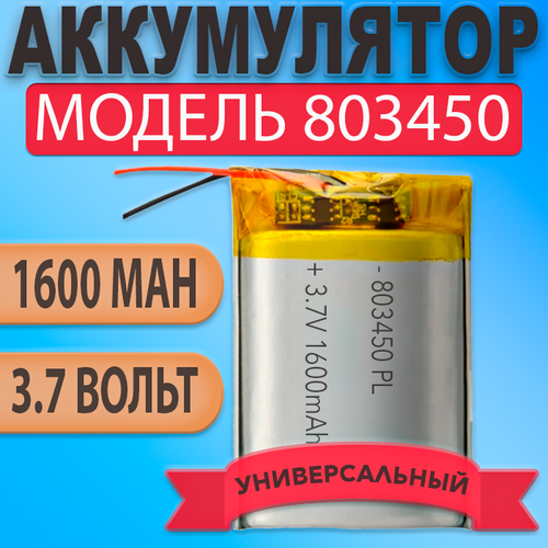 Аккумулятор (батарея) 803450 1600mah 3,7v (50х34х8 мм)