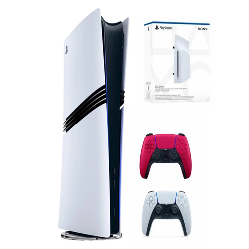 PlayStation 5 Pro Digital Edition, 2000 ГБ SSD, 6ез игр, белый + Дисковый привод Sony, для PlayStation 5, белый + 2й геймпад красный