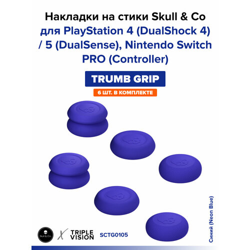 Накладки на стики "Thumb Grip" Skull & Co для PlayStation 4 (DualShock 4) / 5 (DualSense), Nintendo Switch PRO (Controller), 6 штук, Синий (Neon Blue)