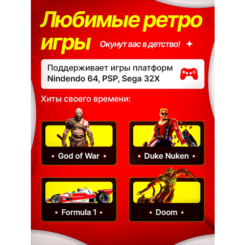 Портативная игровая консоль позволит наслаждаться игрой в 4К HD формате. Приставка нового поколения, поддержка игр, смарт тв, цифровое тв, интернет и многое другое. Отлично подойдет даже для подарка, упаковка красивая в запаянной плёнке. Игровая консоль не требует старой громоздкой приставки, достаточно лишь подключит HDMI адаптер к вашему TV И вы погрузитесь в детские воспоминания. В комплект входят два джойстика, HDMI адаптер, TF карта 64 ГБ с предустановленными 16.000 игр, шнур USB и переходной шнур на HDMI разъем. Так ж
