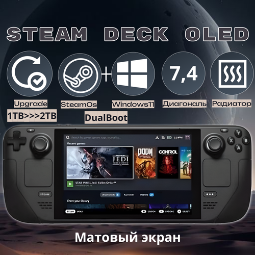 Игровая приставка Valve Steam Deck OLED (глянцевый экран), DualBoot (Windows 11 + SteamOs), 2 ТБ SSD (upgrade) + медно-графитовый радиатор, без игр