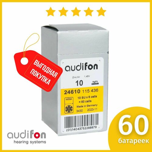 Батарейки для слуховых аппаратов 10 Audifon (коробка 60 батареек)