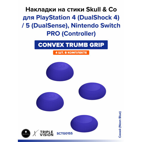 Накладки на стики "Convex Thumb Grip" Skull & Co для PlayStation 4 (DualShock 4) / 5 (DualSense), Nintendo Switch PRO (Controller), 4 штуки, Синий (Neon Blue)