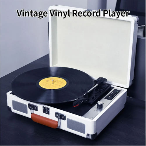 Виниловый проигрыватель MzeliKing в стиле ретро Vintage White/белый, встроенные динамики, Bluetooth 5.3