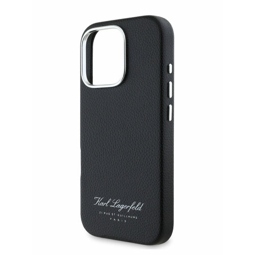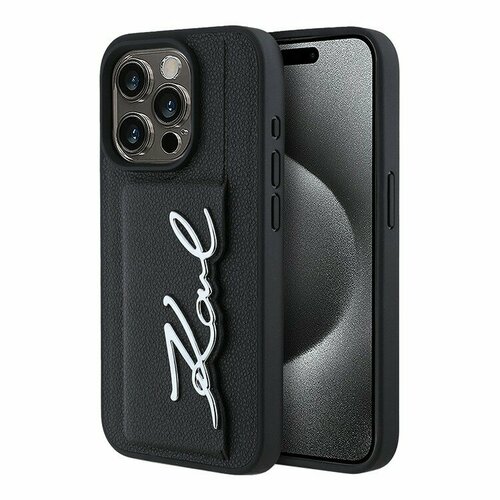 Karl Lagerfeld чехол с карманом для карты на iPhone 15 Pro Max, зернистая кожа PU Metal Signature, черный