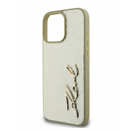 Lagerfeld для iPhone 16 Pro Max чехол PU Wrinkled Signature Metal logo Hard Gold
