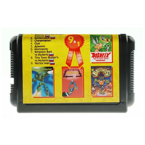 Готовы ли ваши пальцы к быстрым действиям, а как насчёт молниеносной реакции? Готовы? Тогда этот сборник именно для вас! 9 игр, тщательно подобранные по тематике и интересным сюжетам, находятся на этом картридже. Благодаря созданию микрочипов представилась возможность создавать мульти игровые сборники. Согласитесь, это очень приятно, когда на одном носителе целых 9 игр. С появлением приставки SEGA MEGA DRIVE 16bit в игровом мире произошёл настоящий переворот. Было создано множество игр с отличной 16 битной графикой и полифоническим музыкальным сопровождением, которые навсегда оставили свой нестираемый след в сердцах игроманов со всего света! Выбирайте игру и смело идите до конца! Подглядеть решение для сложных моментов в игре, всегда можно на нашем сайте в игровом разделе.