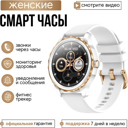 Смарт часы женские круглые, умные наручные с функцией звонка для iOS и Android, водонепроницаемые