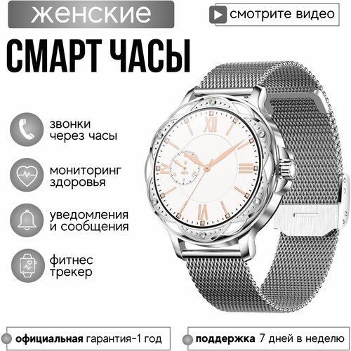Kingwear Cмарт часы женские круглые CF Diamond, 2 ремешка в комплекте (Серебристый)