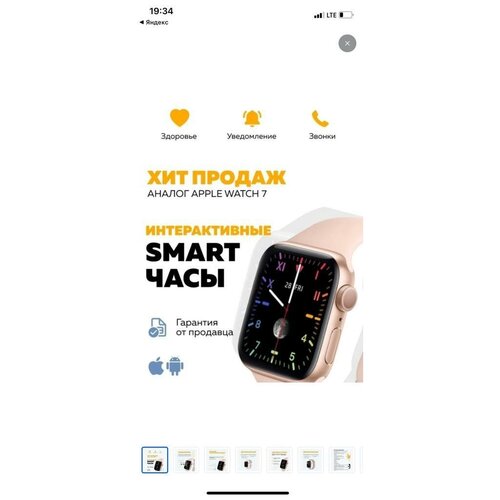 Умные часы/smart watch/7 серия/ с полным экраном/золотой