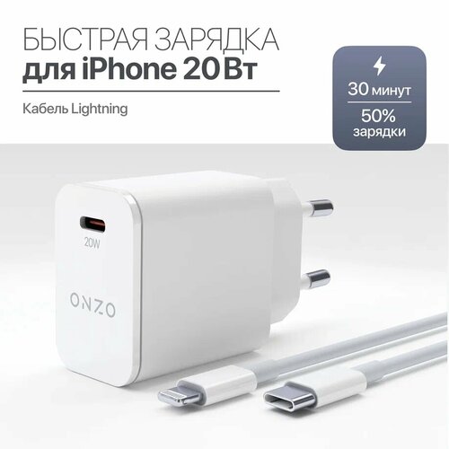 Быстрая зарядка для iPhone, комплект: Блок Type C + кабель Lightning, 20W