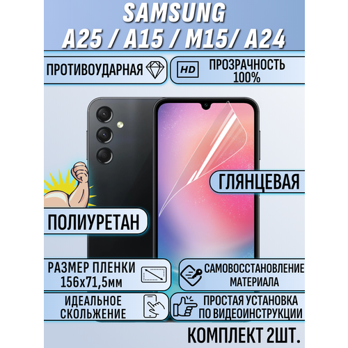 Гидрогелевая пленка Samsung A24 / A25 / A15 / M15 полиуретановое полноэкранное покрытие 2шт