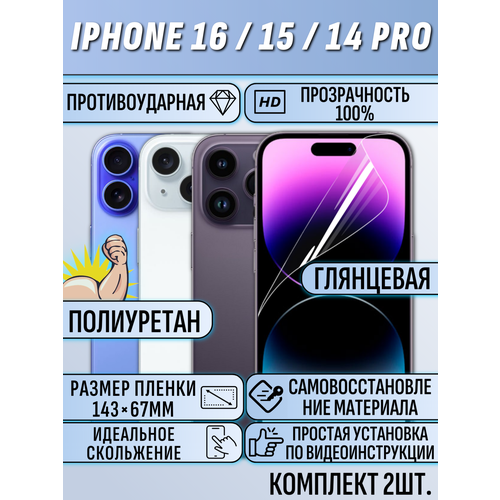 Гидрогелевая пленка для iPhone 15 / 16 / 14 Pro глянцевая под чехол 2шт