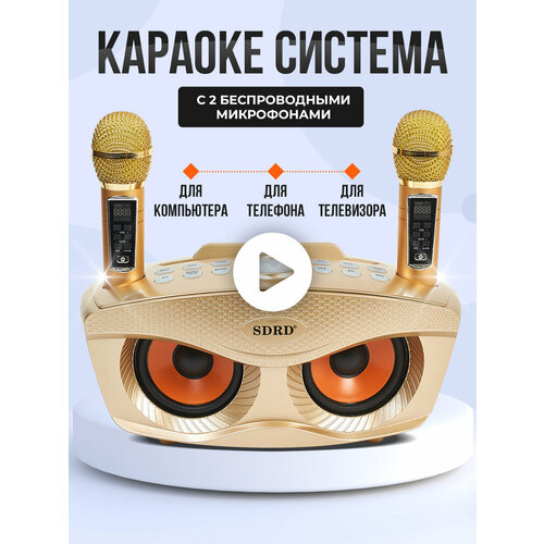 Караоке система с двумя беспроводными микрофонами "SD-306 PLUS" золотая