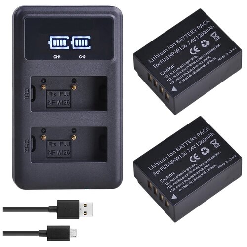 Комплект аккумуляторы 1260mAh и зарядное устройство Run Energy на 2 слота для Fujifilm NP-W126, NP-W126S