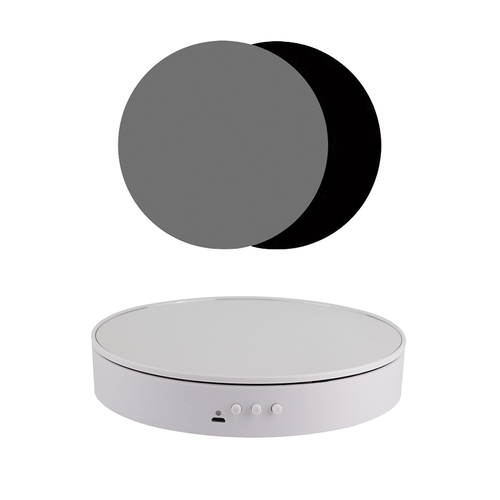 Вращающаяся зеркальная подставка для предметной съемки 20 см, 360°, с пультом ДУ, белая и фотофон