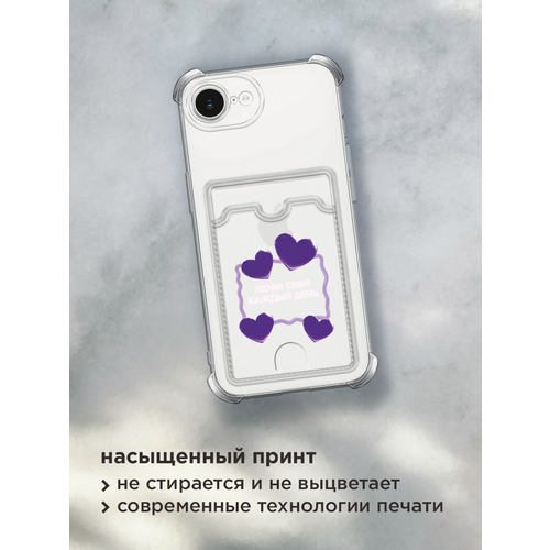 Чехол на Apple iPhone 16e (Айфон 16е) с картой и принтом Сердечки и надпись Люби себя