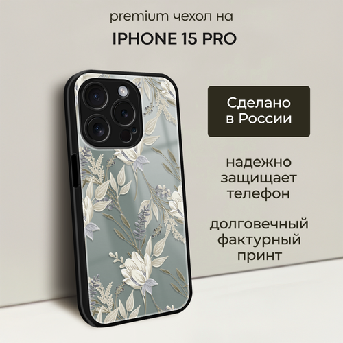 Чехол на Apple iPhone 15 Pro / Айфон 15 Про с объемным принтом "Цветы на бежевом фоне"