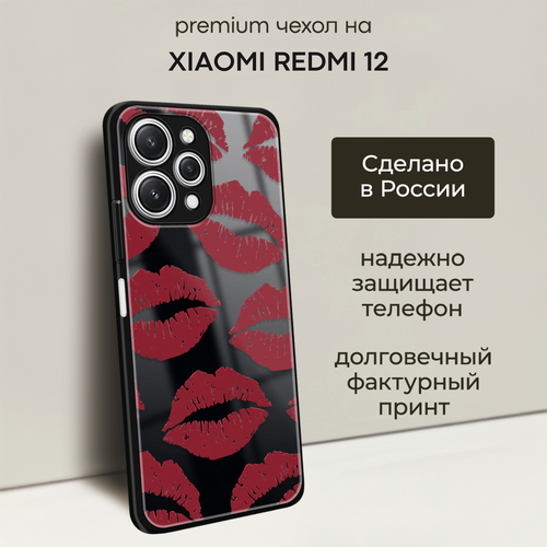 Чехол на Xiaomi Redmi 12 / Сяоми Редми 12 с объемным принтом "Красная помада паттерн"