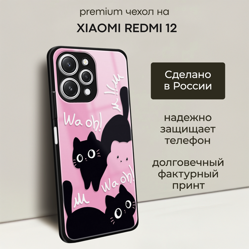 Чехол на Xiaomi Redmi 12 / Сяоми Редми 12 с объемным принтом "Черные котики"