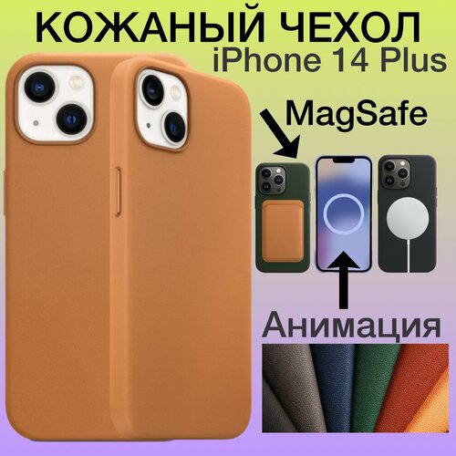 Кожаный чехол на iPhone 14 Plus MagSafe Анимацией