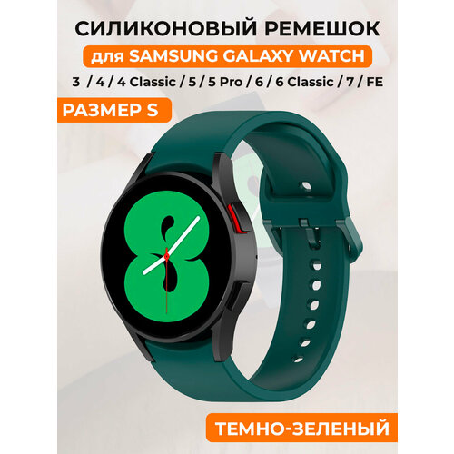 Силиконовый ремешок для Samsung Galaxy Watch 4/5/6/7/FE, пряжка в цвет ремешка, размер S, темно-зеленый