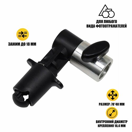 Характеристики:- Материал: пластик ABS, металл.- Резьба шарнира: внешняя - 1/4", внутренняя - 1/4".- Высота шарнира: 5 см.- Ширина зажима для крепления к поверхности: до 4,7 см.
