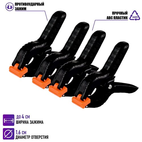 Прищепка зажим PWR-22 универсальная, диаметр 1.6 см, 4 шт.